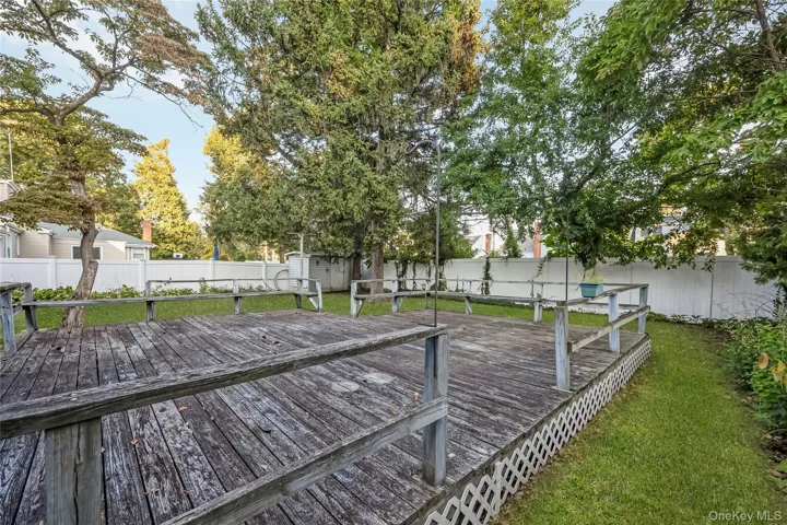 "LongDescription" => "Wooden terrace featuring a storage unit and a fenced backyard"