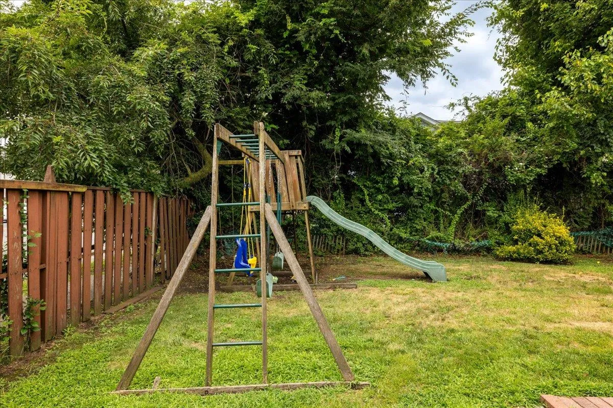 "LongDescription" => "View of jungle gym with a fenced backyard"