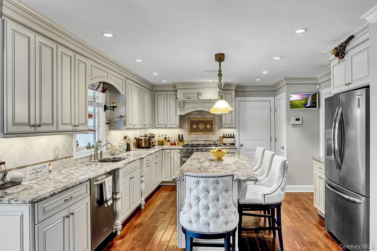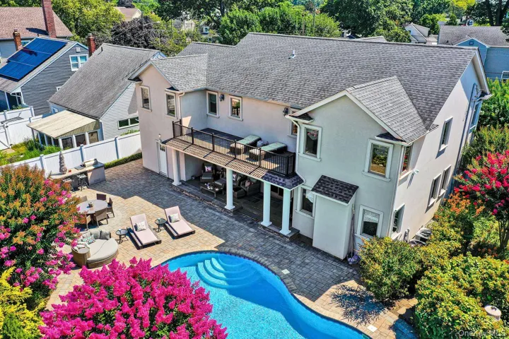 +"PublicRemarks": "This one-of-a-kind impressive custom built in 2015 center hall colonial features the best construction and finishes available. The details in this home are the top of the line and amazing. The exterior is all stucco and features the best available custom windows. As you walk up to this home you will walk up the paver walkway to the portico and in front of the custom double door entrance. As you enter the home, you will be in the wide entry hallway with a coat closet, half bath and wide solid wood staircase. To the left is the large living room and then into the even larger family room with a fireplace. Off of the entry foyer to the right is the large banquet formal dining room and then also accessed from the center hall is the very large custom eat-in-kitchen with high end appliances, custom wood cabinets, island and granite counters. There is also a large dining area in the kitchen. Off of the kitchen is the entrance to the oversized one-car electric eye opener garage with a double wide paver driveway. As you ascend the wide staircase, you will be on the second floor and to the left is a huge primary bedroom retreat with two large walk-in closets and office or nursery, an amazing large top of the line full bath with a separate soaking tub, large steam shower, toilet and double sinks. There is a large private terrace off of the primary bedroom. There are three additional very large bedrooms all with large closets and a beautiful hall bath. There is a huge unfinished attic space. The full basement is also finished with high ceilings. The private, fully PVC fenced back yard is like an outstanding island oasis. The private yard features tall mature plantings, a large salt water in-ground heated pool, a hot tub for five or six people, an outdoor kitchen and a covered sitting area. There is 2,898 square feet of living space excluding the finished basement and the property is 8,000 square feet or 80X100. There are in-ground sprinklers, central air, hardwood floors throughout, all gas cooking and heating, the best available central station alarm burglar and fire security system with cameras around the house and so much more! This is a totally custom home with the best available materials in and out. There is nothing like this home on the market. This house is a must see!!!"
