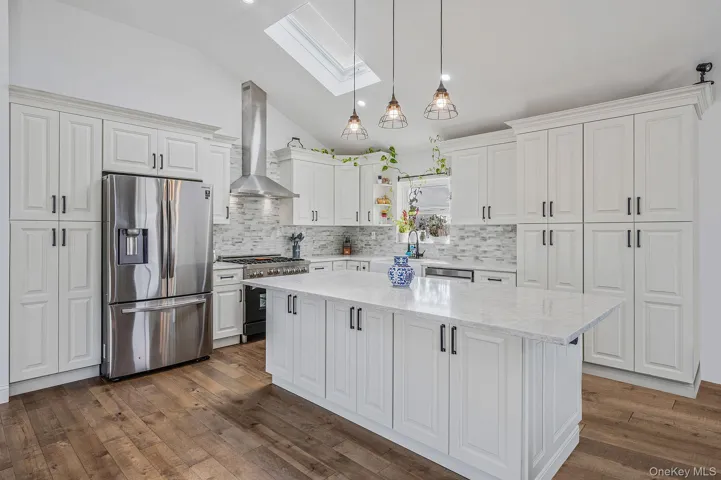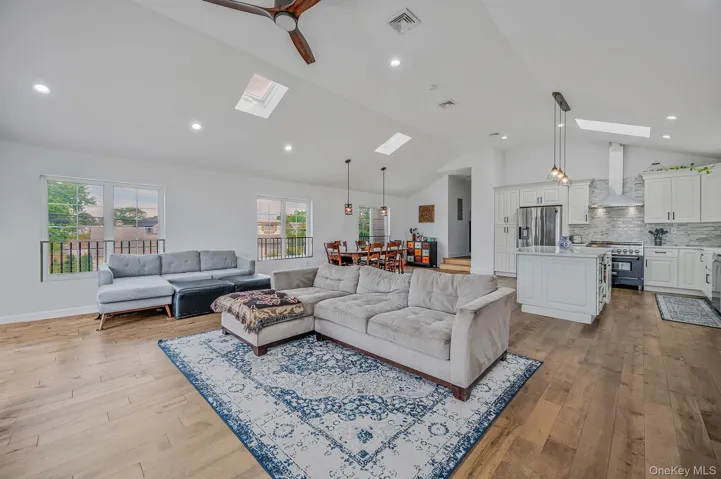 +"PublicRemarks": "Perfect for commuters, investors, and families, this one-of-a-kind, ultra-solid home in Valley Stream offers unbeatable convenience and exceptional value. Custom-built by the owner with steel beam construction, hurricane-grade reinforcements, and a reinforced foundation, this home was built to last and designed to impress. Featuring 3 full kitchens, multiple private entrances, 2 laundry rooms, and a flexible layout, it's ideal for multi-generational living or generating rental income — live in one part and rent the other! The gourmet chef’s kitchen is equipped with quartz countertops, a center island, three pantries, and stainless steel appliances. Additional highlights include vaulted ceilings, four skylights, hardwood floors, zoned heating, new high-end windows, and a tankless water heater. Renovated in 2020, it’s fully move-in ready. The oversized corner lot offers potential for a deck or second-floor extension, and the private 6-car driveway with carport adds rare convenience. Just 1 block to the bus, Food World grocery, and 5 minutes to Green Acres Mall — plus it’s zoned for the Blue Ribbon-awarded Shaw Avenue School. Whether you're a city commuter, savvy investor, or growing family, this home is a rare find that offers unmatched versatility, strength, and long-term value."
