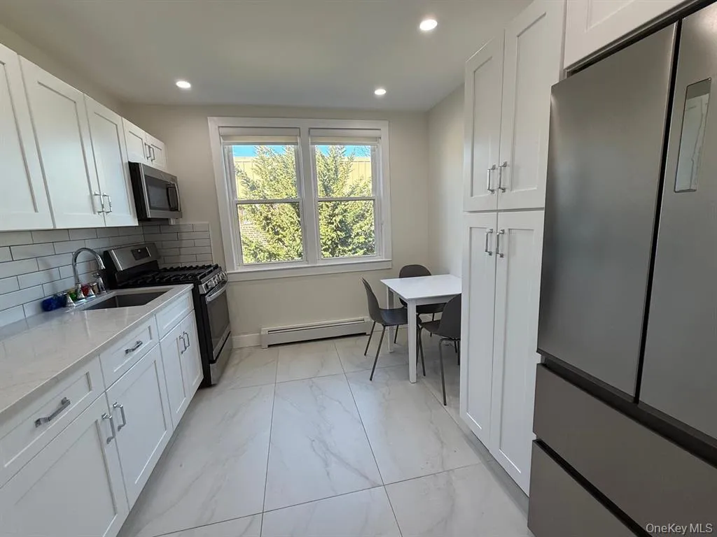 +"PublicRemarks": "Completely Renovated and Absolutely Stunning 2BR, 1BA Apartment! This bright and sunny space features a spacious living and dining room, a modern eat-in kitchen with a washer and dryer, and brand-new floors, cabinets, lighting, windows, countertops, and stainless steel appliances. Conveniently located near Cedarhurst Park, schools, restaurants, public transportation, and houses of worship."