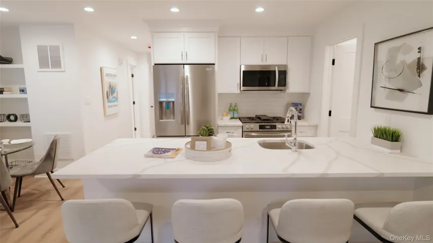 Come see this 2 bed 2 bath New Construction Condo in the Village of Lynbrook. Laundry located in the unit. Single story living with all high end finishes. Stainless steel appliance package and all new utility hook ups. All white exterior with black windows and accents make this one pop. 40 on site parking spots for the complex of only 16 units. Many have gone but this one can still be yours. Do not wait on it. Only unit being offered on MLS, taxes to be assessed upon completion of apportionment. Pictures are renderings but staged model unit available to view..
