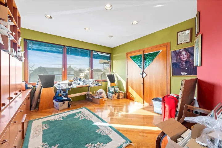 This home includes formal living and dining rooms that exude elegance and sophistication. The formal living room is tastefully decorated with beautiful hardwood floors, creating a warm and inviting space for relaxation and socializing. The formal dining room, adjacent to the living room, offers a refined setting for hosting formal dinners and special occasions, complemented by the stunning waterfront views.\n