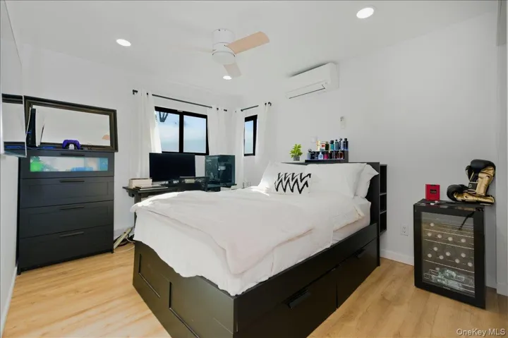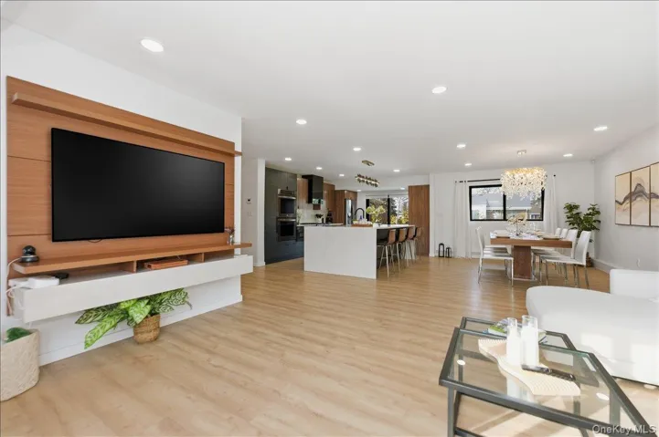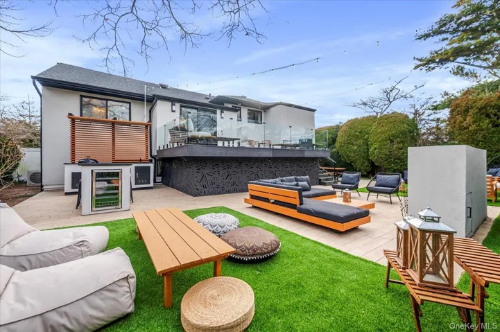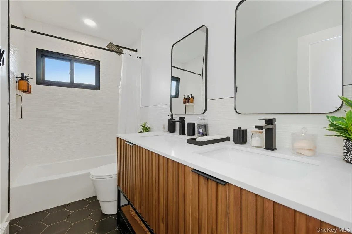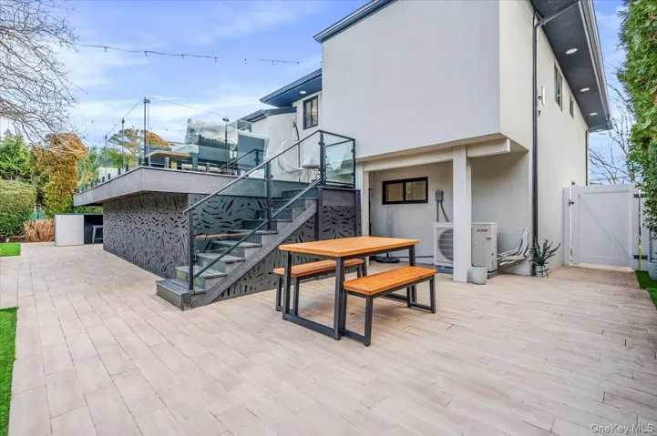 Presenting this stylishly renovated 4 bedroom, 2.5 bath split, located in the Baldwin Harbor area, blending quiet luxury with everyday comfort. This modern home features the gourmet kitchen of your dreams – 3 ovens, sizeable center island, quartz counters, plus a professional second kitchen on the first floor, perfect for catering, baking and entertaining for special occasions (new owner to re-apply for 1st floor kitchen permit). The main kitchen is open, light and bright, with stainless steel appliances, plentiful cabinet storage and sliders opening to your adjacent Trex deck. An elegant living room, with custom window treatments, and a spacious formal dining room are ideal spaces for year round gatherings. Enjoy luxury vinyl floors throughout the upper level and tile floors on the lower level. The primary bedroom en suite boasts a newly updated bathroom and walk-in-closets. Downstairs features a den with egress window, a 4th bedroom (or home office), a modern half bath, separate laundry/boiler room, and a professional sized kitchen with commercial grade refrigerator, freezer, additional stove and sink. The backyard is your private retreat after a long day, complete with sleek patio, deck, privacy trees, outdoor kitchen and inground sprinklers front and back (by the hedges along the fence). The backyard is low-maintenance, always green, turf. This home was updated inside and out. Completed in 2022 — roof, gutters with leaf guards, stucco siding, windows, blown-in insulation, mini splits (heat & AC), 200 AMP electric, plumbing replaced to PVC, doors, walkways. ’20 hot water heater – no detail was spared! Every upgrade was chosen with intention and every detail shows pride of ownership.