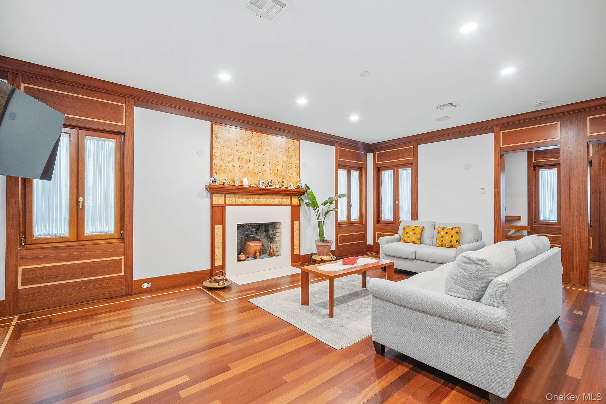 Premium finishes are showcased at every turn, including custom Brazilian cherry and white oak flooring with radiant heat, custom wood moldings, and mahogany French windows, doors, and trim. Soaring high ceilings, a wood-burning fireplace, and a powder section add warmth and character, while a walk-up attic and basement with laundry area provide flexibility and functionality.