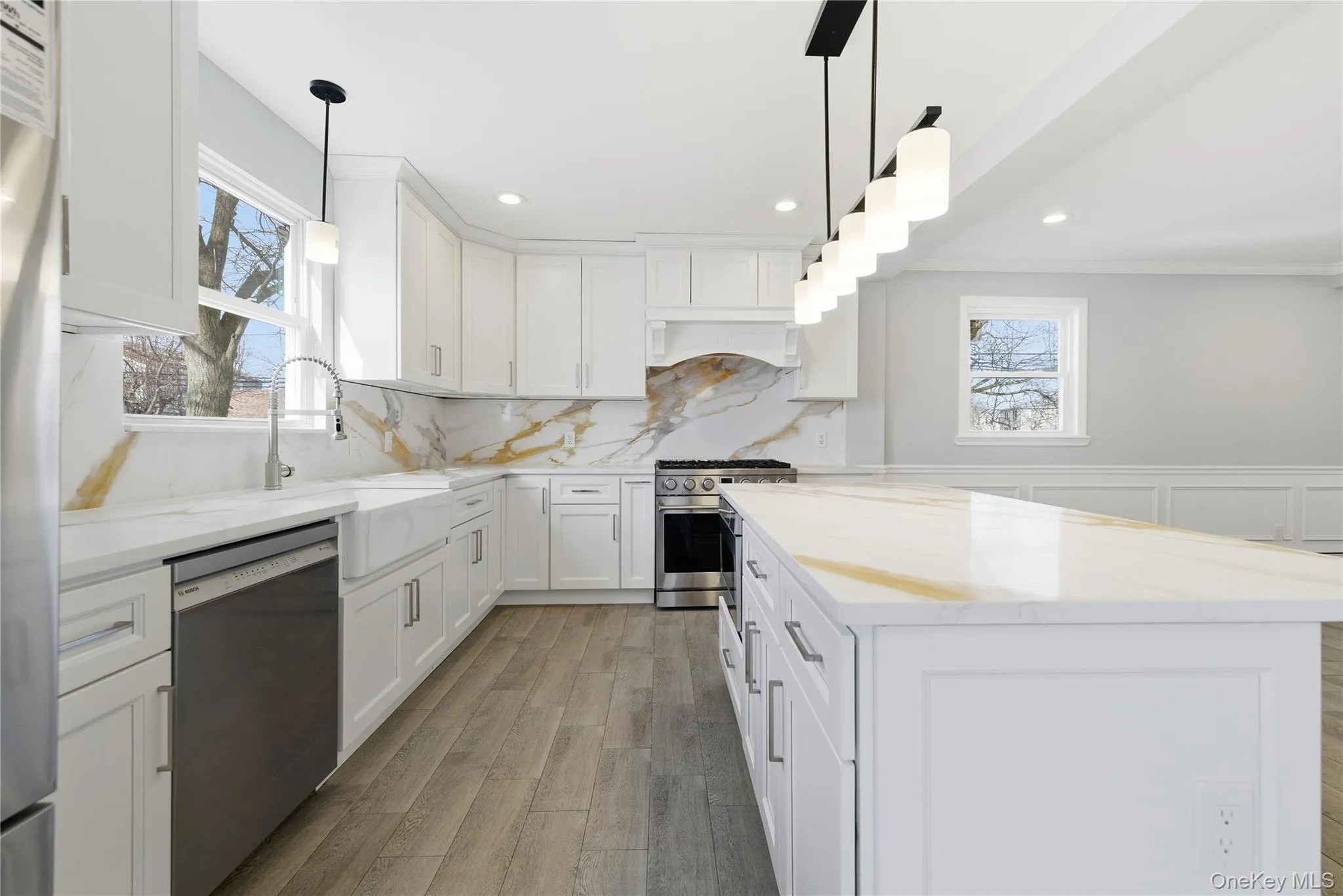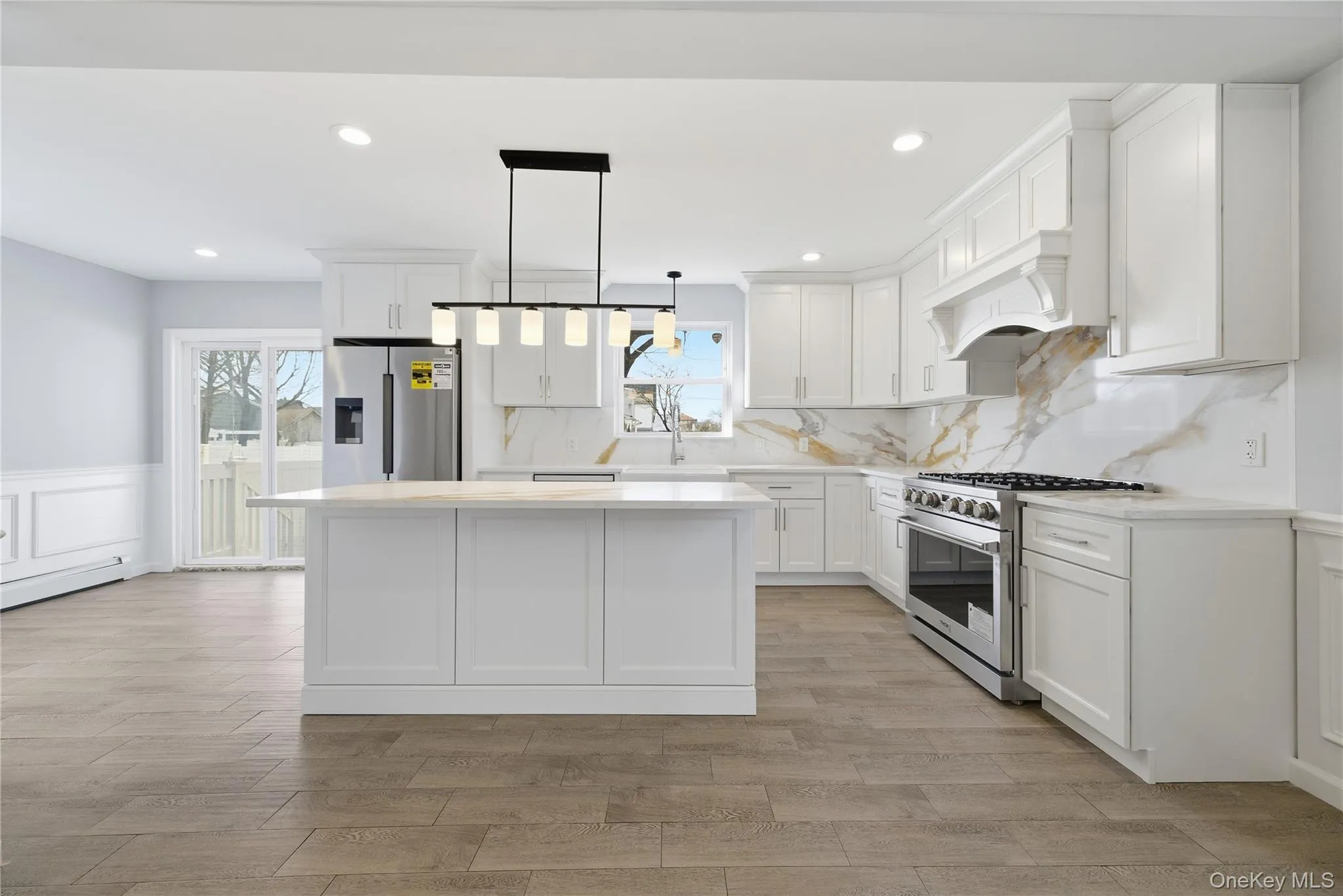 Introducing 2962 Grand Avenue in Baldwin Harbor. This 3 bedroom, 2.5 bathroom colonial just underwent a major renovation and is ready for it’s new owner! The first floor features a sun-drenched living room and dining room leading into fully renovated open-concept kitchen featuring beautiful white cabinetry, quartz countertops and backsplash, center island & new stainless steel appliances. Completing the first floor is a new half-bathroom, laundry room with included washer/dryer and sliders to the backyard. Additionally, the first floor features brand new tile flooring, LED hi-hats and custom wainscoting throughout. All 3 bedrooms are upstairs, including the primary ensuite with a full bathroom & private balcony access & 1 full bathroom in the hallway. Refinished hardwood floors throughout the upper level. Additional features include 200 amp electric, a new Navien tankless heating system, new PVC fence, 4-car driveway & young roof. Seconds from public transportation, schools, parks, & shops. Don’t miss your chance to own this stunning colonial in Baldwin Harbor!
