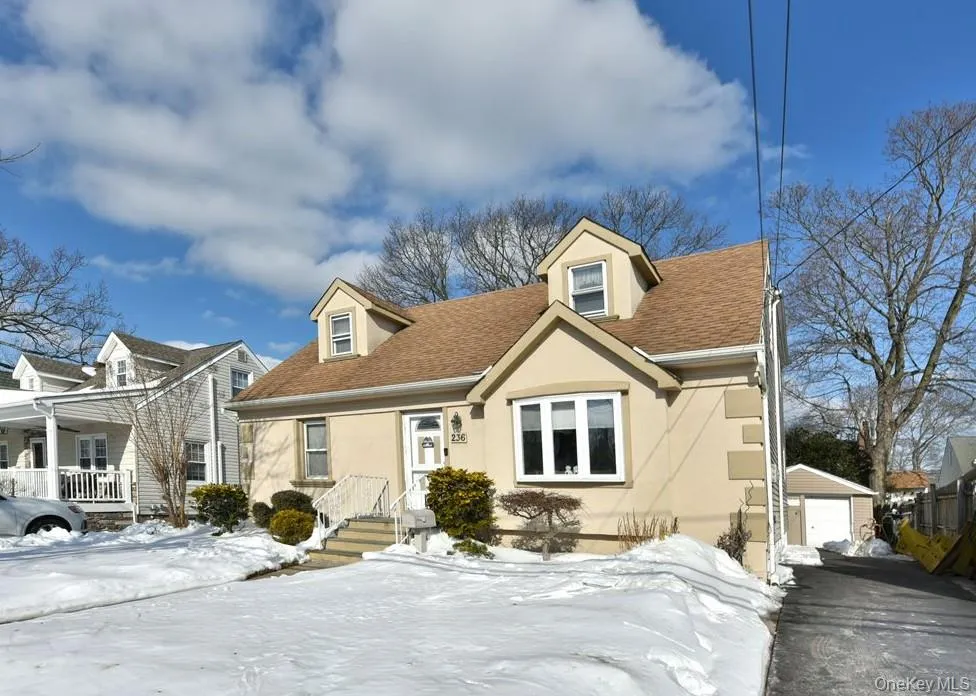 Welcome to this beautifully expanded 4-bedroom, 3-bath Cape with a rear extension, perfectly situated in the heart of Merrick. This spacious home features four generously sized bedrooms, including a first-floor primary suite with a unique dressing area. Enjoy an updated granite kitchen, custom remote-controlled front window shade, and a fully finished basement offering versatile living space. Step outside to a covered, paved rear patio complete with an overhead fan – ideal for entertaining – along with a detached garage for added convenience. Centrally located near town, transportation, schools, and shopping. Located in School District #25: Chatterton Elementary, Merrick Avenue Middle School, and Sanford H. Calhoun High School.