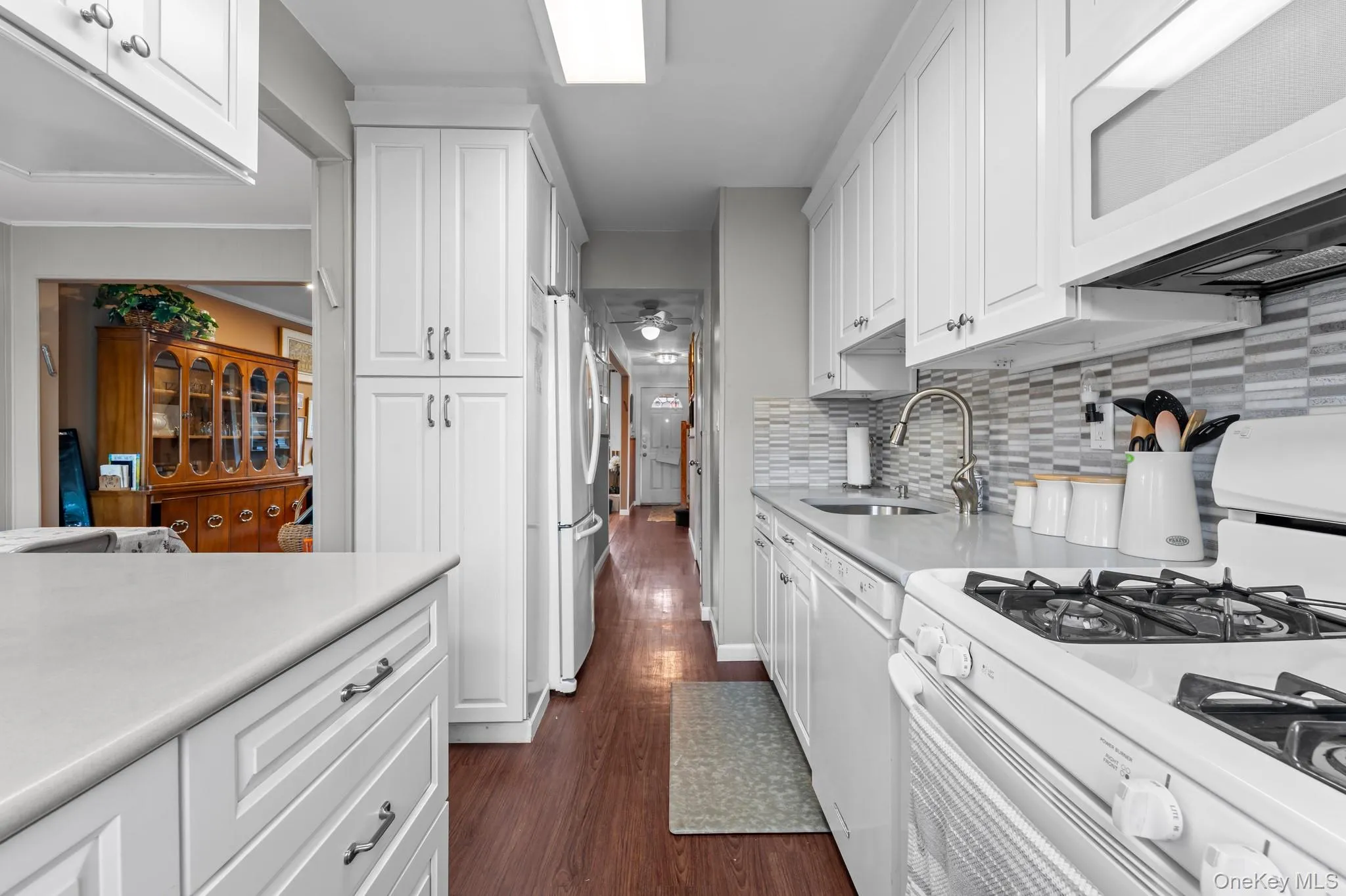 Welcome home! This condo offers low maintenance living. Upon entering, step into the living room area which features crown molding, recessed lighting, and large picture window (1 year old). The renovated kitchen (5 years young) boasts white cabinetry, quartz countertops, under-cabinet lighting and large double wide peninsula. Step out from the dining area onto an expansive deck, perfect for seamless indoor/outdoor living. The main level also includes a convenient half bath. Upstairs, you’ll find three bedrooms and one full bath. The primary bedroom is generously sized with ample storage and additional direct access to the full bath. Downstairs in the basement, you will find a tastefully redone den area, expansive storage closet, laundry and utility room. Additional features include central system, gas heat, and hardwood flooring. First floor windows have been recently replaced. Two community pools, community room for gatherings, pet friendly community. Close to shopping and Long Beach beaches. Won’t last!!!