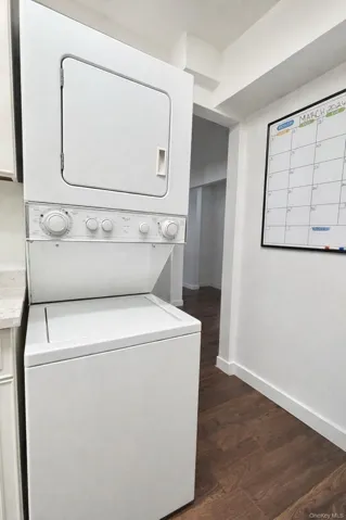 The apartment features a large living room and formal dining room with hardwood floors and direct access to an oversized private terrace overlooking Hewlett Bay Park – perfect for relaxing or entertaining. The updated kitchen includes quartz countertops and stainless steel appliances.