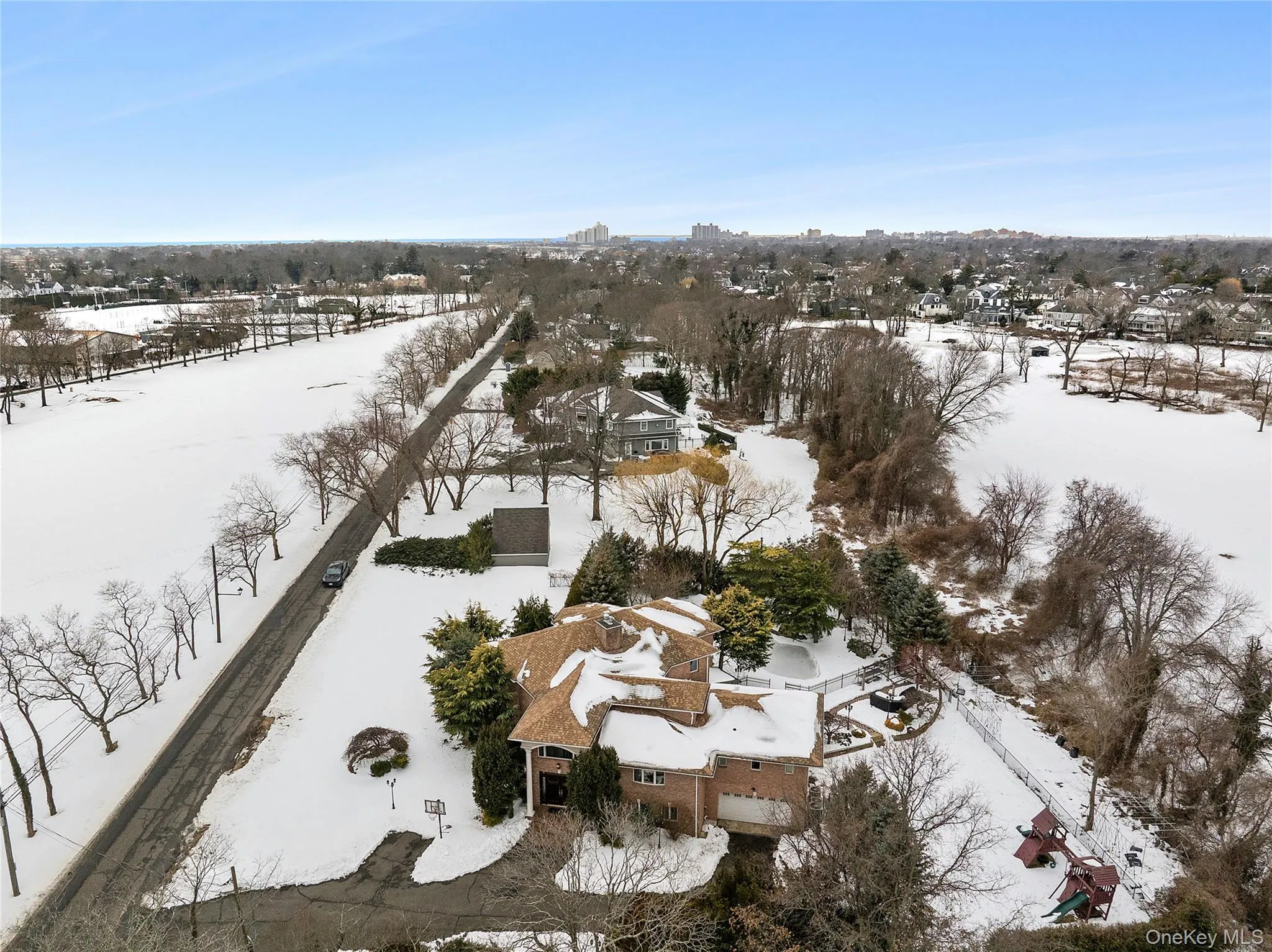 A distinguished six-bedroom, 5.5-bathroom custom Colonial embodying Old World elegance and timeless sophistication, set on an expansive 0.59-acre property (just over half an acre) in the exclusive Back of Lawrence with sweeping golf course views. A gracious entry foyer with soaring ceilings unveils beautifully proportioned interiors, leading to a refined living room with fireplace and French doors—an inviting setting for both formal entertaining and intimate gatherings. The formal dining room transitions seamlessly into an expansive gourmet kitchen appointed with premier Viking and Sub-Zero appliances, bespoke Poggenpohl cabinetry, dual Franke sinks, and two Asko dishwashers—where artisanal craftsmanship meets modern luxury.
