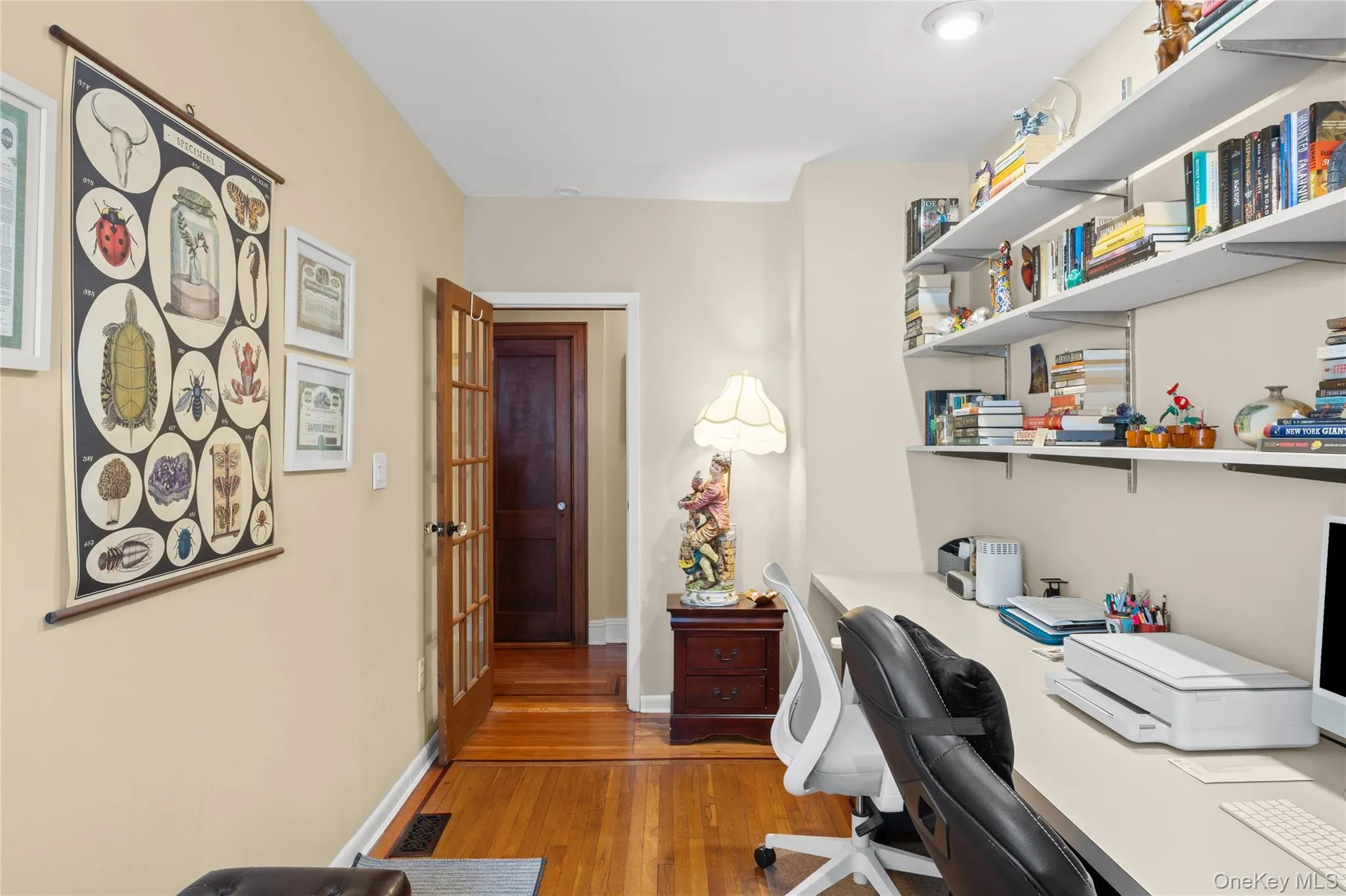 Set in the Merrick Gables section of Merrick, this 1927 brick bungalow blends original architectural character with thoughtful updates. Located less than one mile from the Merrick train station and positioned conveniently between Sunrise Highway and Merrick Road, the property offers convenient access to transportation, beaches, shopping, and local amenities. The home showcases many original details consistent with the neighborhood’s historic design, including inlaid hardwood floors, crown and original base moulding, glass-paned doors, natural woodwork, an arched doorway, and a wood-burning fireplace. An oversized covered front porch and patio provide inviting outdoor spaces for everyday enjoyment or gatherings. The interior includes three bedrooms and updated bathrooms, along with improvements such as a roof replaced in 2021 (15-year warranty), windows updated in 2022, and new central air conditioning installed in 2023. Additional features include gas heating, fenced yard, and a detached two-car garage. Merrick Gables is known for its early 20th-century homes, originally developed with distinctive architectural elements that continue to define the character of the area today.