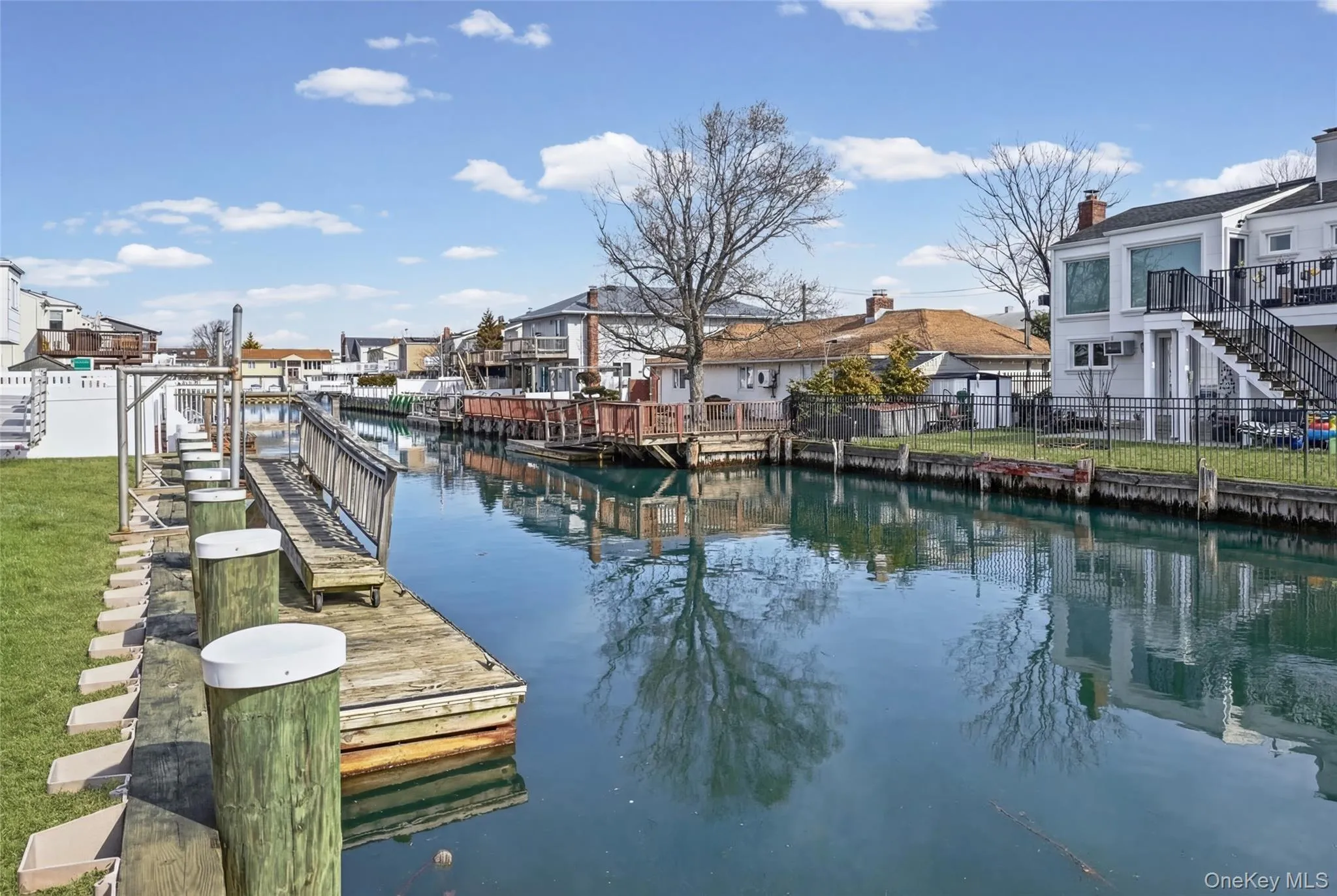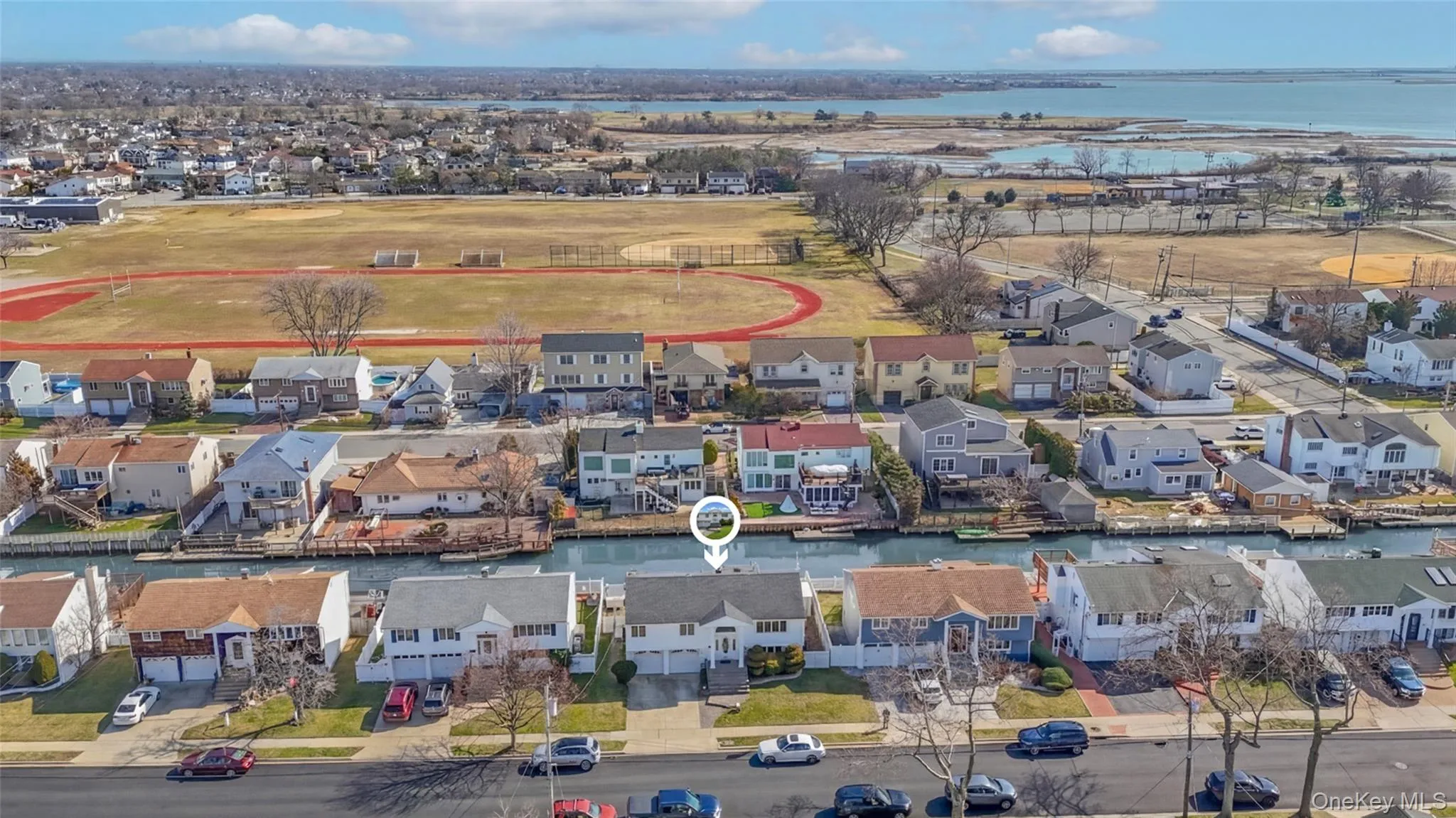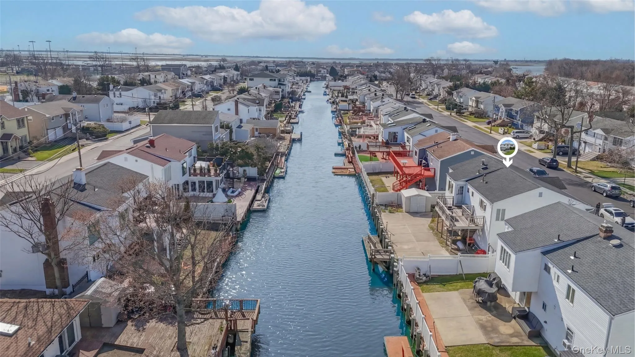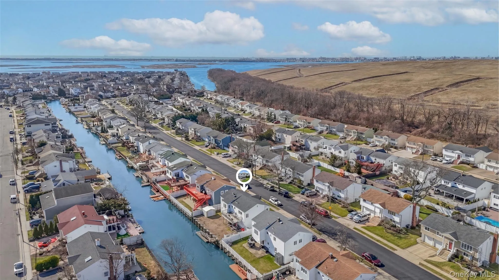 Waterfront high ranch offering 4 bedrooms and 2 full baths, set on a desirable water-facing property with endless potential. This home features a spacious and functional layout with hardwood floors throughout and full central air, providing year-round comfort. The kitchen is equipped with a premium Viking stove and flows into the dining area, making it ideal for everyday living and entertaining. Generous living space throughout offers flexibility for a variety of needs. Additional highlights include a gas line for BBQ, a 2-car garage with its own heating zone, and a whole-house generator for added convenience and peace of mind. Enjoy true waterfront living with direct access, complete with a boat lift and floating dock—perfect for boating, relaxing, and taking in the views. A wonderful opportunity to add your personal touch while enjoying all the benefits of this sought-after waterfront setting.