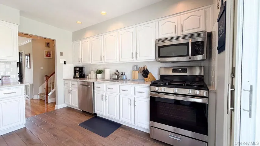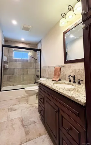 Located in the heart of Bellmore, this beautifully renovated split-level home offers the perfect blend of comfort, style, and convenience. Featuring 3 bedrooms and 2 full baths, this move-in ready residence sits on a deep property with an expansive backyard, complete with a patio and deck, ideal for entertaining and outdoor enjoyment. Inside, you’ll find a recently updated kitchen with sleek quartz countertops and durable wood-look tile flooring, all completed within the past few years. Both full bathrooms have been tastefully renovated and enhanced with radiant heated floors for added luxury. A refreshed laundry room and a hot water heater approximately 1 year young add to the home’s modern appeal. Additional features include central air and central heating systems (approximately 2 years young), baseboard heating for added comfort, natural gas, and a brand new gas stove. The home is also equipped with a 200-amp electrical panel and generator hookup for peace of mind. Perfectly positioned near major parkways, the LIRR, and a wide array of shopping and dining options, this home offers both convenience and lifestyle. A true turnkey opportunity in a prime Bellmore location.