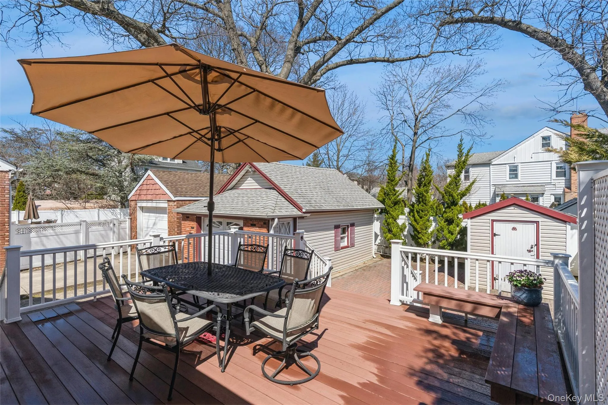 French doors open to a spacious rear deck overlooking a paved backyard, creating a seamless indoor-outdoor flow. The property also includes a one-car garage and a storage shed. The boiler is approximately 10 years old and roof is approximately 15 years old. Conveniently located near transportation, approximately 0.5 miles from the LIRR.
