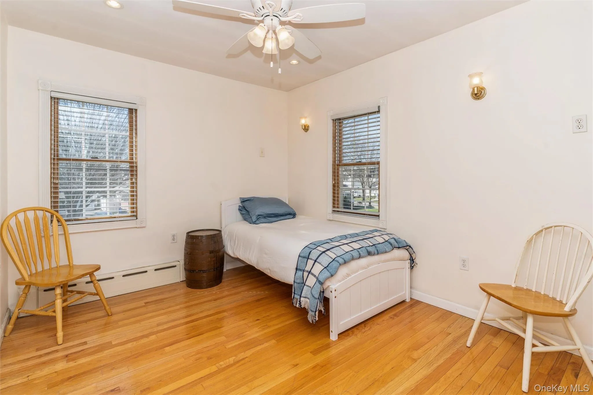 Upstairs, hardwood floors run throughout, with generously sized bedrooms and ample storage. Four skylights provide natural light across both levels. Additional highlights include Andersen windows and doors, 200-amp electrical service, gas heat, and ductless air conditioning.