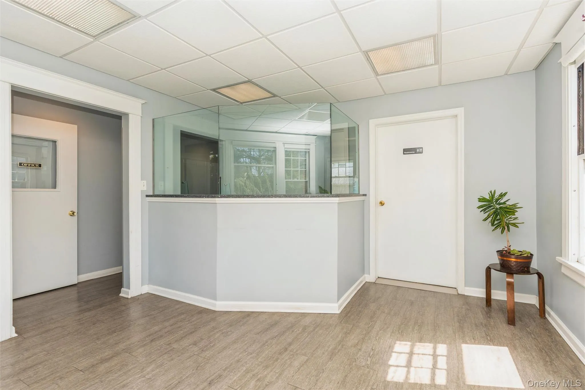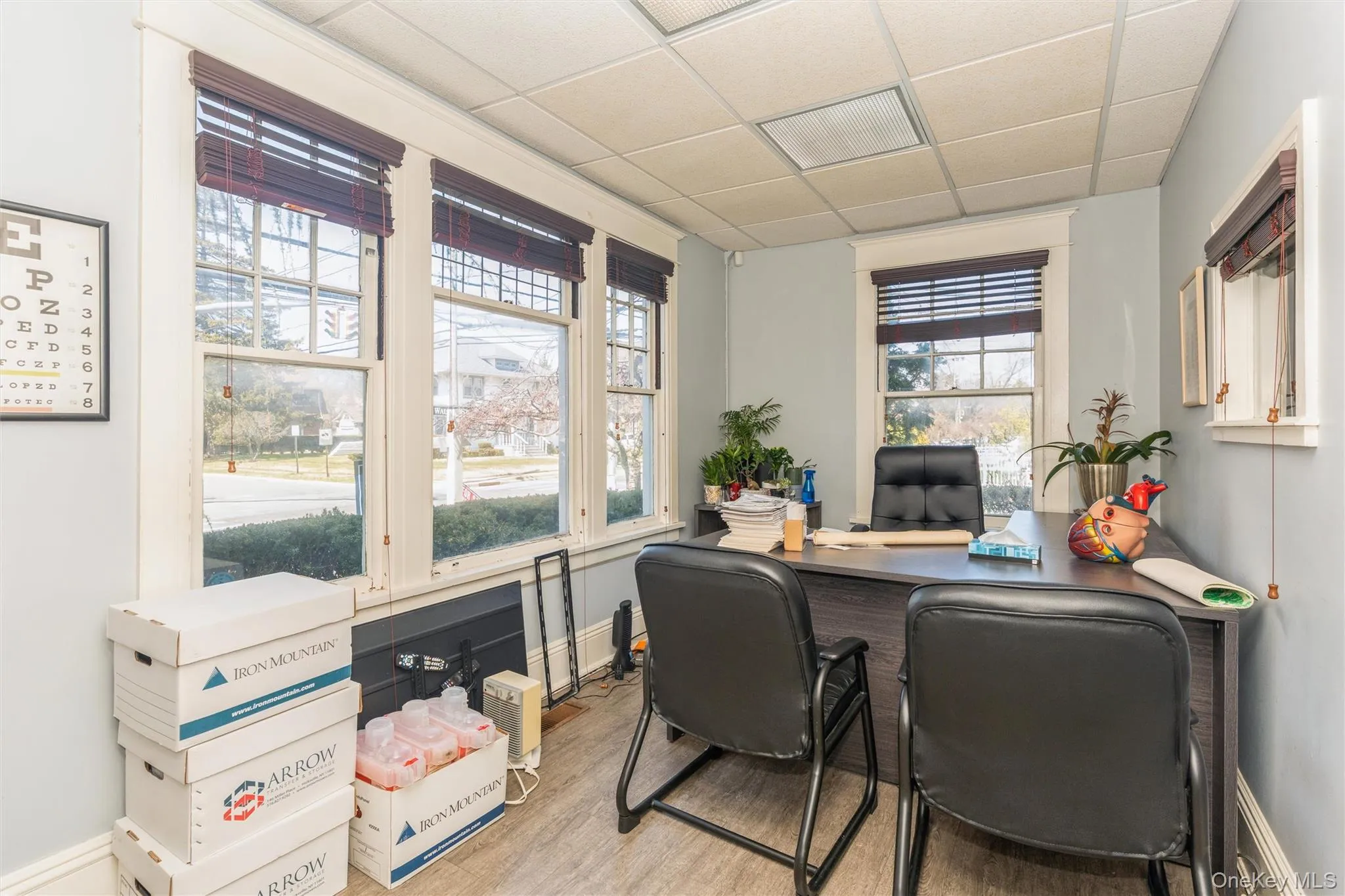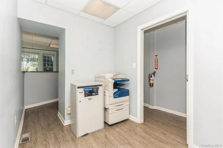 The first level is thoughtfully arranged as a professional medical office designed for smooth workflow and patient comfort. As you enter the front door, you’re welcomed into a spacious waiting area with a dedicated receptionist station and ADA-compliant restroom, followed by a medical assistant’s office that supports daily operations. The hallway then guides you in a natural U-shaped path, creating separation between public and clinical spaces while keeping everything easily accessible, including two side-by-side examination rooms, a private consultation room, and two large offices. Toward the rear, a fully equipped stress test room with a small lab and additional restroom enhances the suite’s functionality. A private back entrance with a ramp leading to Walnut Street provides convenient staff and patient access, completing a layout that is efficient, professional, and turnkey for medical use.