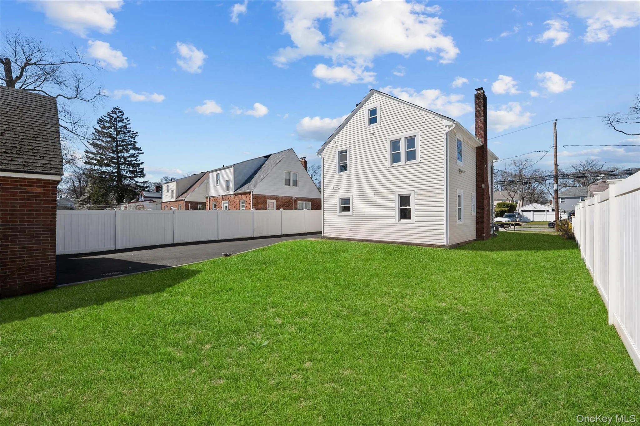 "LongDescription" => "Back of house with a fenced backyard, a residential view, and a chimney"