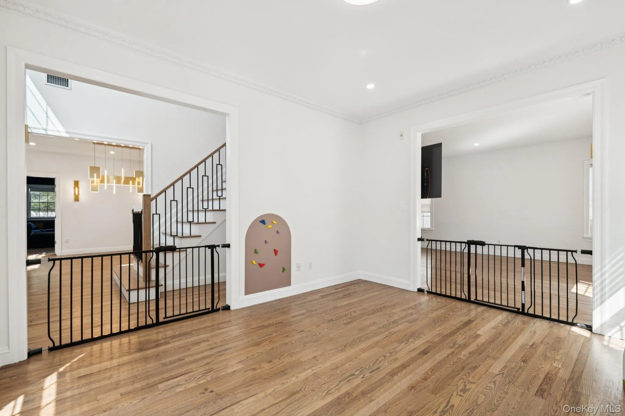 Inside, soaring ceilings set the tone from the moment you arrive. Thoughtfully renovated throughout, the home features a beautifully updated kitchen, refreshed baths, and gleaming new floors that flow seamlessly across all levels. With five bedrooms, four full baths, and a powder room, there is room for everyone and then some. A fully integrated smart home system adds a layer of everyday ease, putting comfort and convenience at your fingertips.