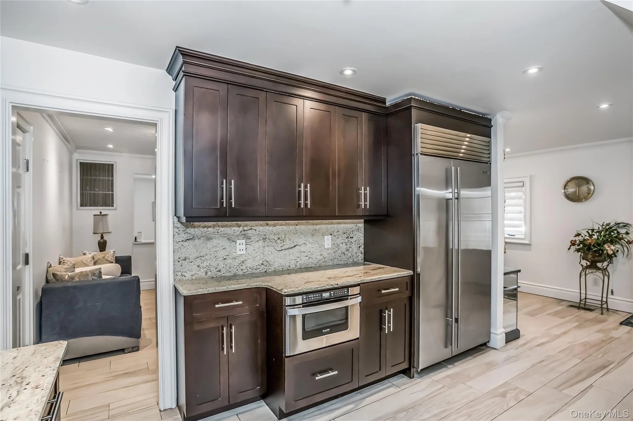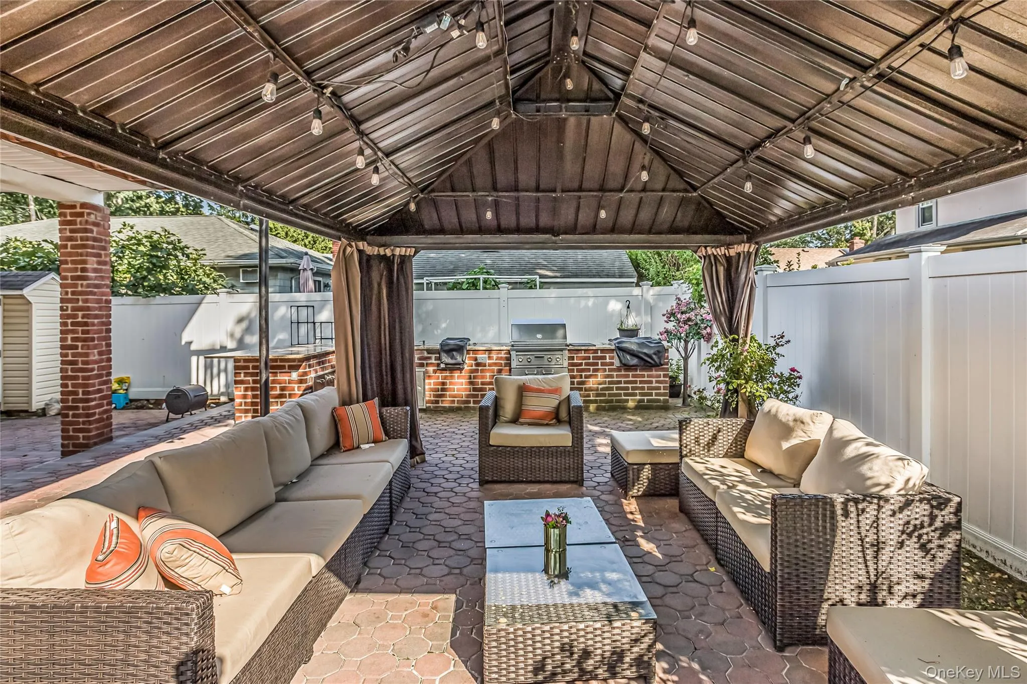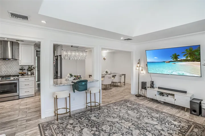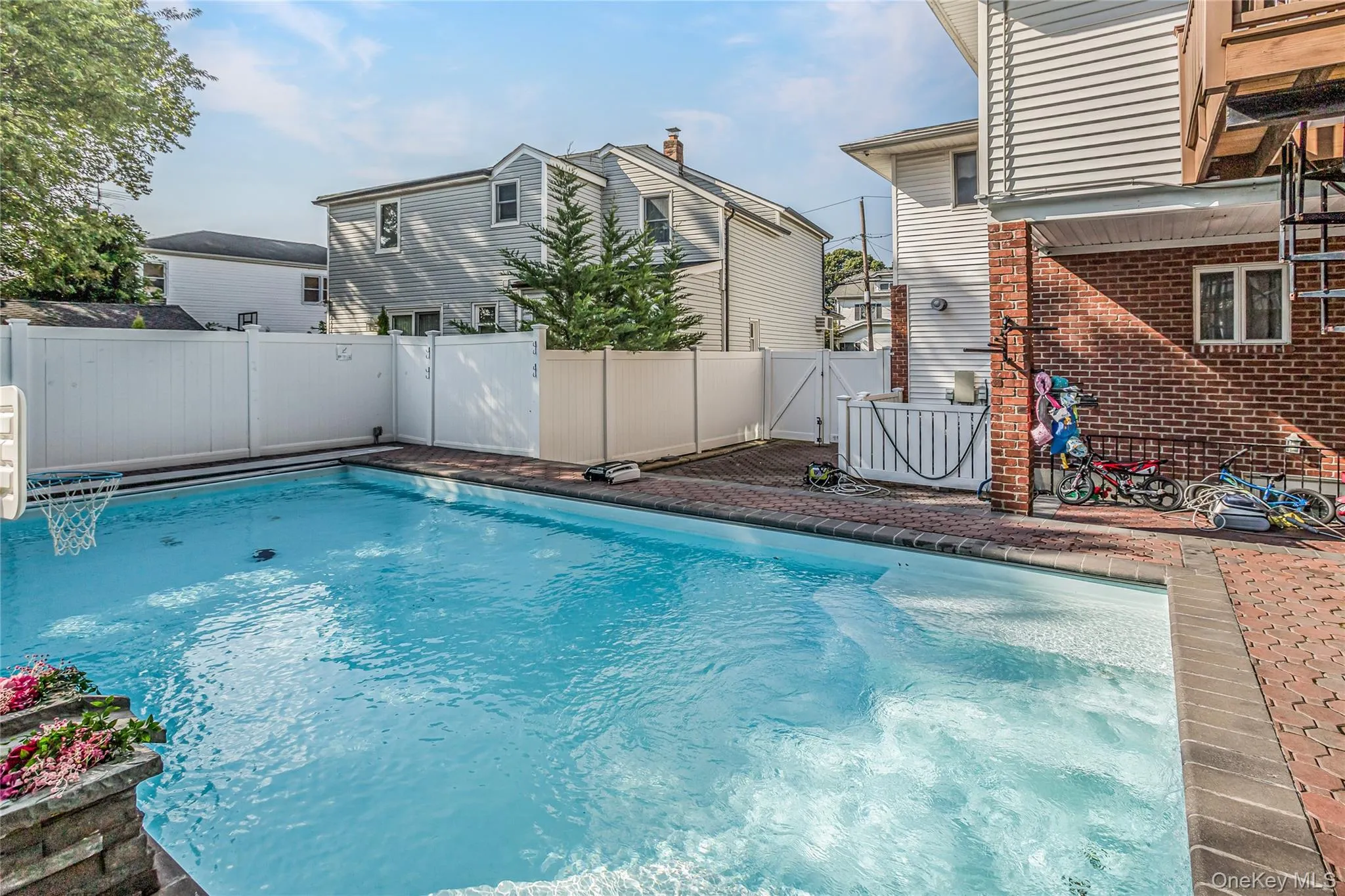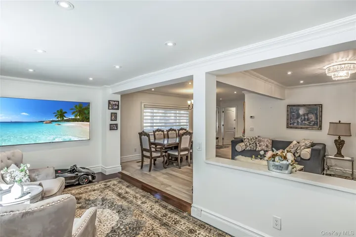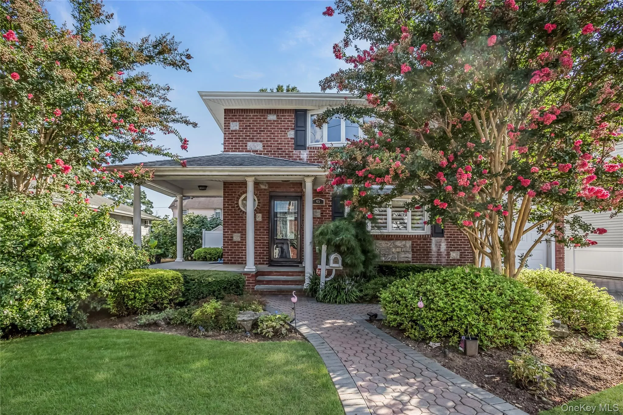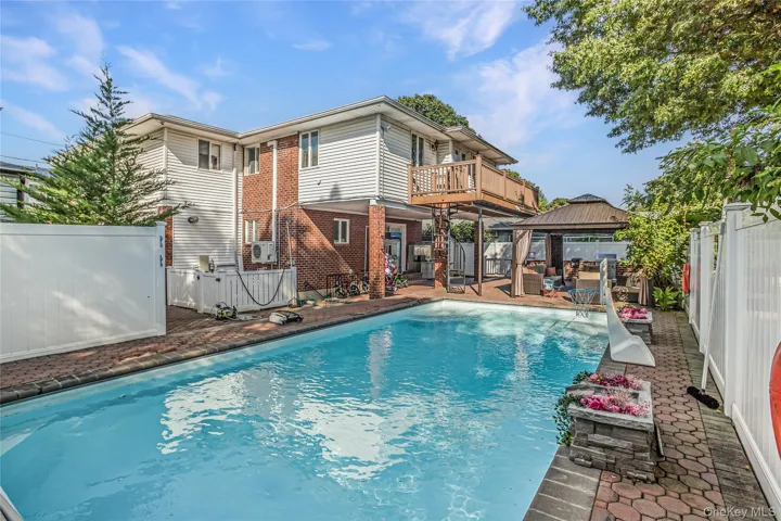 Discover the potential of this stunning fully-bricked duplex in the highly sought-after Lynbrook Manor area, within the prestigious Lynbrook School District 20. This expansive residence offers 5 bedrooms and 3.5 baths. The first floor features a modern kitchen with high-end appliances and granite countertops, a formal dining room, a living room, a TV room, 2 bedrooms, and its own laundry area. The second floor, renovated three years ago, includes all smart appliances and a new kitchen. It also boasts a living room with vaulted ceilings, a second kitchen, a formal dining room, 3 bedrooms, a master en suite with a walk-in closet and balcony, and another laundry area. The house is in mint condition with a brand-new AC unit. The property also includes a partly finished basement for entertaining and storage. Outside, enjoy an in-ground saltwater pool, an outdoor kitchen, and a paver patio with a Trex deck, perfect for entertaining. The property features 2 electric meters, 2 furnaces, central air conditioning, gas heating and cooking, and radiant heat in the master suite on the second floor. This home is ideal for both end users and investors, offering a prime location.