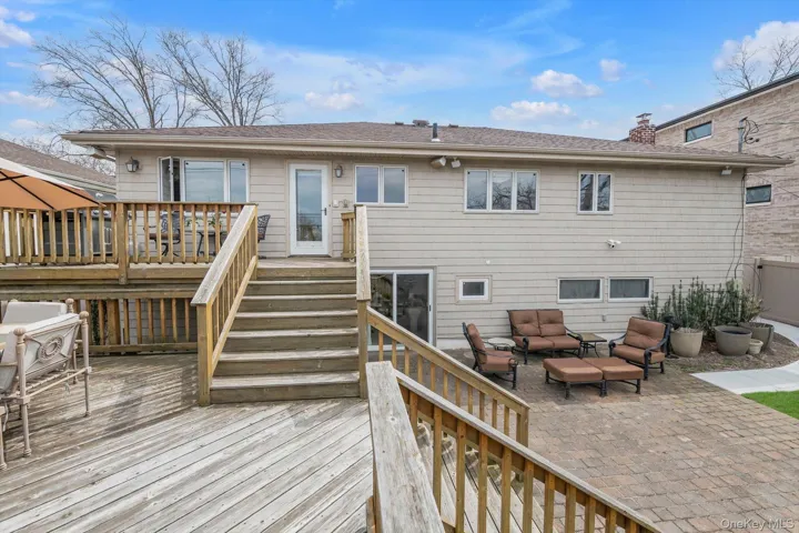 Enjoy The Waterview in This 4/5 Bedroom, 3 Bath Move in Ready Expanded Raised Ranch on Lovely Street in N. Woodmere. This Home Features a Living Room with Tray Ceiling, Formal Dining Room, Granite & Wood Eat in Kitchen with Peninsula & Stainless Steel Appliances. Primary Bedroom Has a Beautiful New Bathroom(Handicap Accessible) & WIC, Plus 2 Additional Bedrooms, Lots of Closets and Updated Bath with Jacuzzi Tub on Main Level. Lower Level Boasts a Warm & Inviting Family Room with Sliders to Pavered Patio in Back Yard, as Well as a Spacious Bedroom, Updated Full Bath, Bonus Rm(BR or Gym), Laundry Rm(Laundry Shoot), Utilities & Storage. Bi Level Deck off The Kitchen is the Perfect Place to Relax & Enjoy the Waterview. Backyard Fully Fenced in with PVC Fence. Plenty of Parking on the Pavered Circular Driveway and 1 Car Garage. Gas Available on the Street. CAC, IG Sprinklers, Alarm. SD#14(Hewlett Woodmere). Convenient Location to LIRR, Park, Houses of Worship & Beaches.