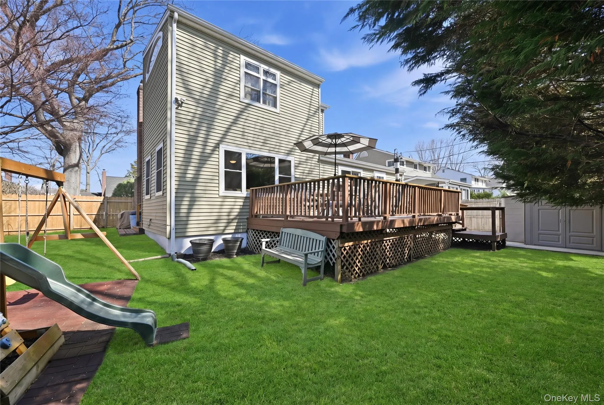 This spacious 1808 square foot home features an 8 room layout including an oversized den and an expansive primary suite featuring a private bath with a Jacuzzi tub. Notable amenities include hardwood floors throughout, a dedicated laundry room, gas-powered hot air heat, and central air (installed in 2020) & inground sprinklers. The outdoor space is perfect for entertaining with a backyard deck, while the existing sheds and swing set are included as gifts.