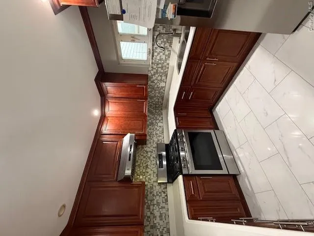 This is a beautiful 1 bedroom house attached to another one with cover patio. Everything is freshly renovated and painted. Hardwood floors, stainless still appliances. 2 care garage. Attic for storage. No basement. In the heart of Valley Stream, 5 min to a train station, shopping, pool, park, buses.